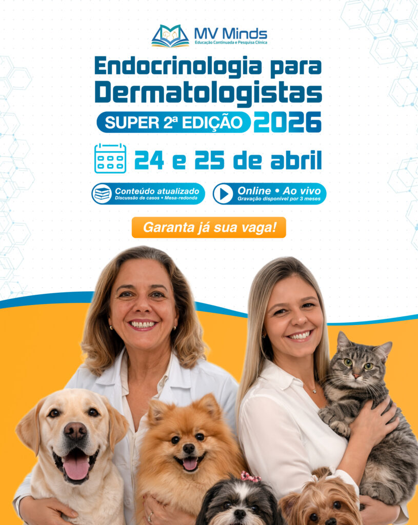 Alopecias persistentes, piodermites recorrentes, otites crônicas e respostas terapêuticas inconsistentes são desafios frequentes na rotina clínica. Você já se perguntou por que alguns casos dermatológicos simplesmente não evoluem como deveriam? Em muitos casos, a causa não está apenas na pele, mas na interação entre distúrbios hormonais, metabolismo e terapias dermatológicas. Sem integrar endocrinologia e dermatologia, o manejo fica incompleto — e o paciente continua sem resposta. Neste curso, reunimos especialistas de ambas as áreas que compartilharão conhecimentos sobre como identificar e tratar a interface entre endocrinopatias e manifestações cutâneas, com diretrizes claras para garantir segurança e eficácia na prática clínica. Uma oportunidade única para transformar casos desafiadores em diagnósticos precisos e tratamentos efetivos. Se você é médico veterinário ou acadêmico que deseja dominar essa integração essencial, inscreva-se agora e eleve o nível do seu atendimento dermatológico!